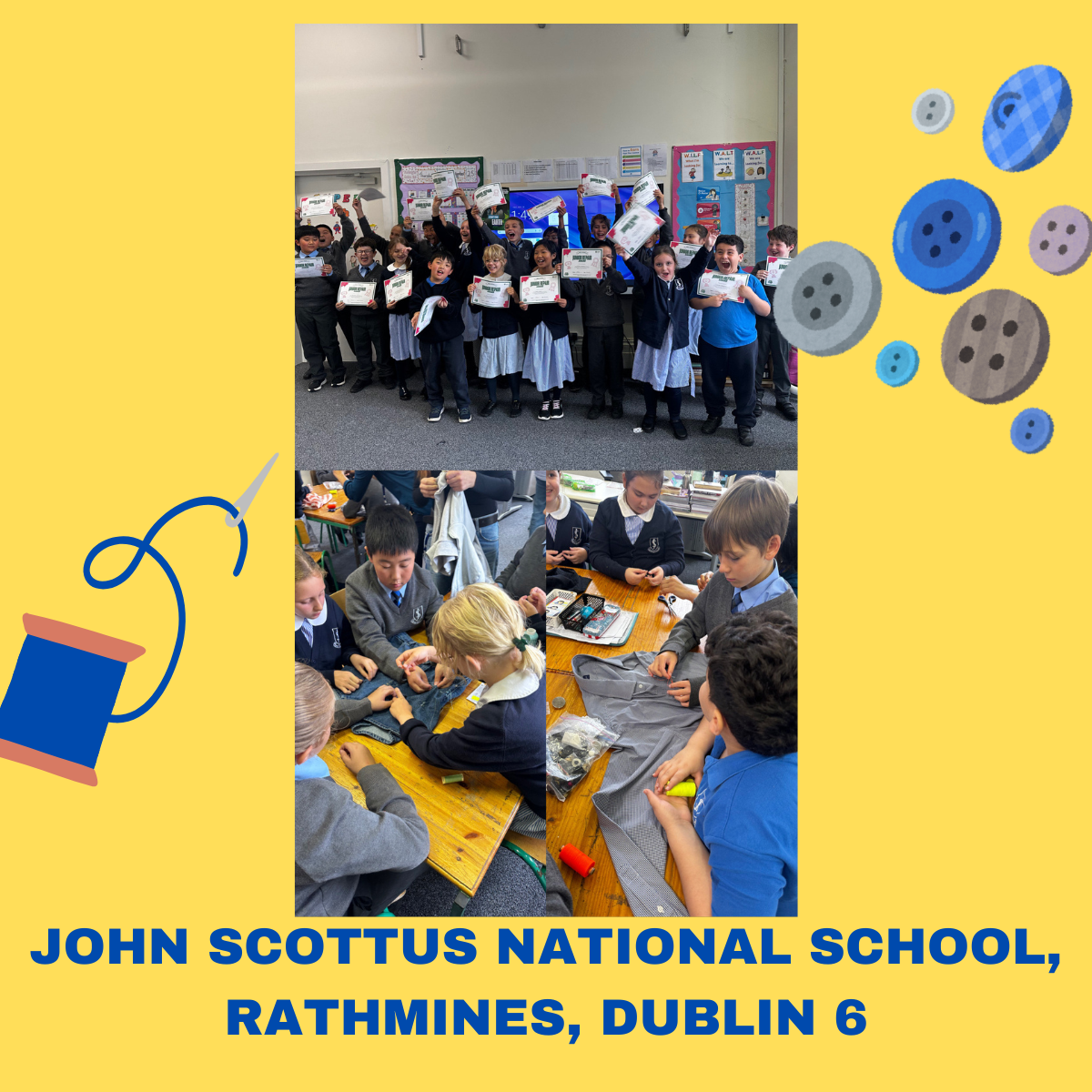 Last week, 4th class were featured on RTÉ News2day and became true super sewists! They learned practical life skills such as sewing on a button, repairing rips and tears, and even doing patchwork with different materials and shapes to cover stains. The classroom was full of excitement, teamwork, and plenty of fun!